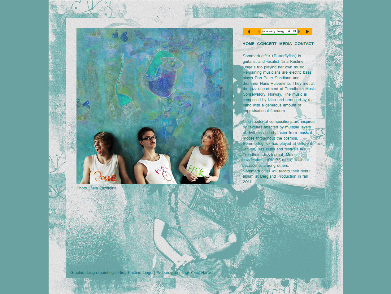 | Description: | Website for the improv jazz band Sommerfuglfisk. Includes an audio player, image gallery and a CMS system so the client can change the content without assistance. |